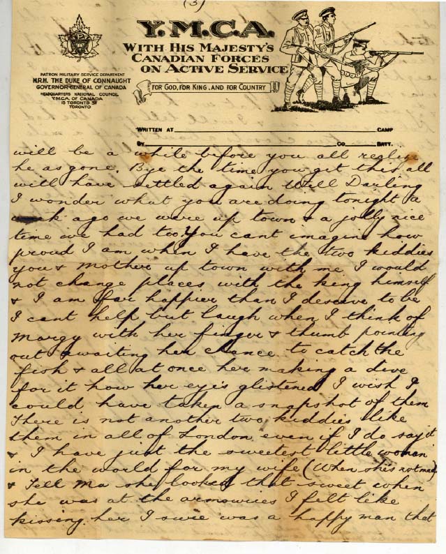 A collection of letters from Pte Dick Armer to his wife Mabel who he frequently referred to as "Dear old girl". His three children were Billie, Marjorie and Dorothy who was born while he was away. Dick had promised to "write every day" and, with few exceptions, kept his promise. The letters were written during WW1 from Camp Borden in Canada, on the train to Halifax, on board ship to England, from Witley Camp and France. Scroll to the bottom of the entry and click on comments to leave a message
